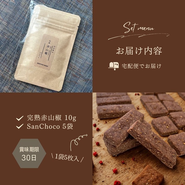 【限定】完熟赤山椒10g & SanChoco 5袋セット